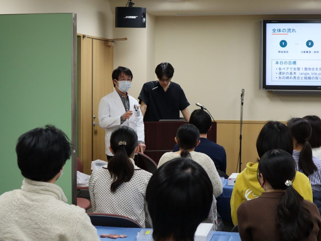 2月5日に開催した 「ハンズオンセミナー」は、多数のご参加をいただき、盛会に終了しました! 今回のテーマは”腸管吻合”。ドクターの指導を受けながら、一針一針、縫合していきます。 みなさん、とてもお上手でした!また来てね。![]()